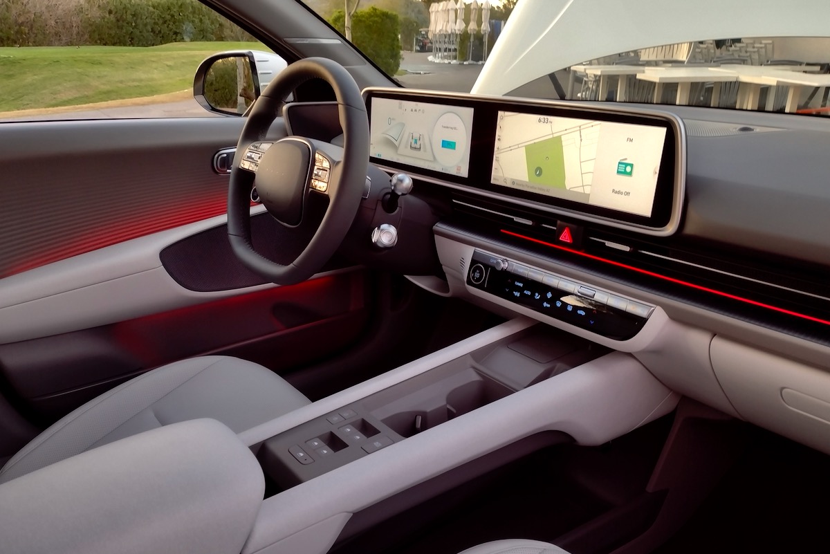 The interior is also just plain cooler than the minimalist cabins of Tesla and Polestar.